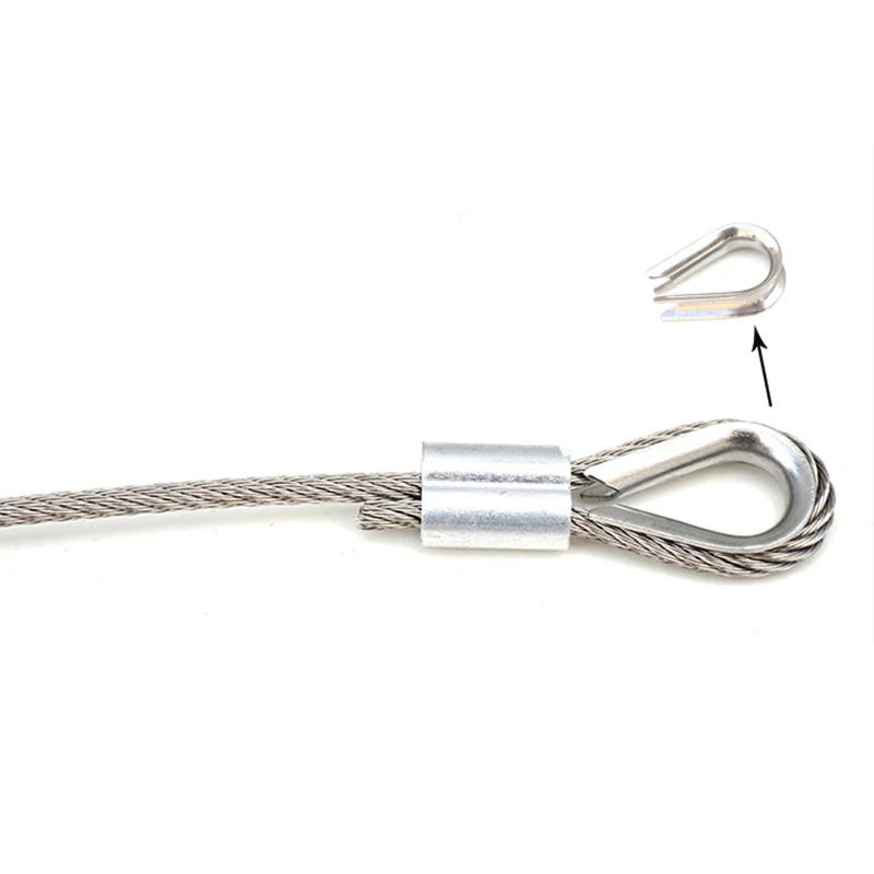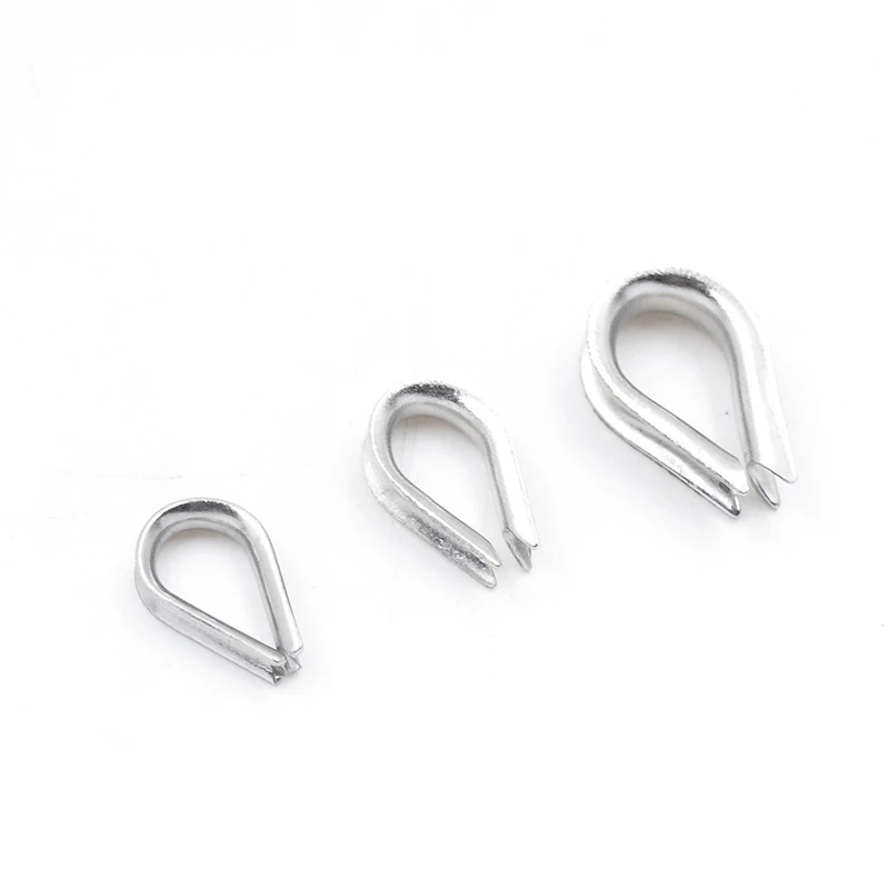 This product is a set of 304 stainless steel thimbles ring clamps designed for securing cable wire ropes. Available in various sizes, these clamps are essential for ensuring safety and reliability in rigging applications.