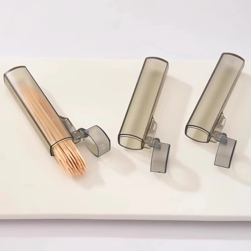 This Portable Toothpick Box is a practical and reusable storage solution for toothpicks and small items. Its transparent gray design allows you to easily see the contents, making it ideal for camping or everyday use.