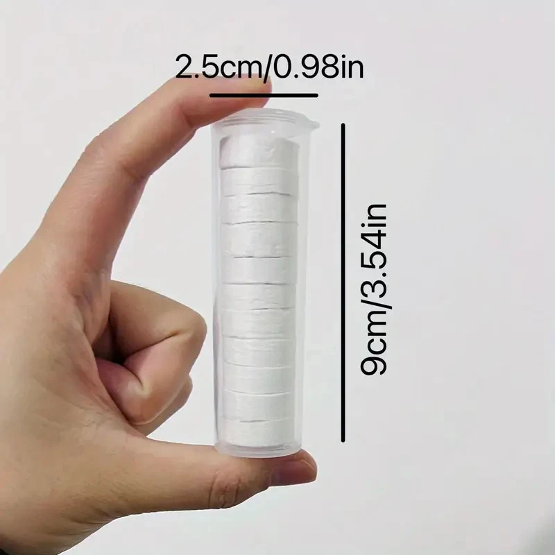 Introducing the 1/2roll Compressed Towel Tablet, a portable non-woven face towel perfect for travel and camping. These 5-second expandable moistened tissues are designed for convenience and ease of use.