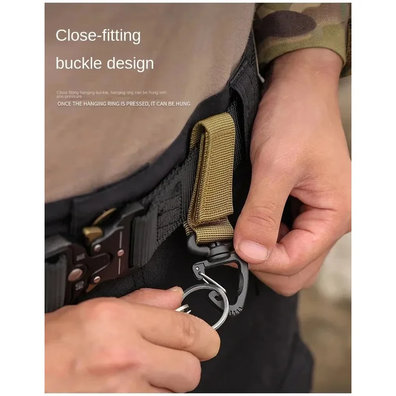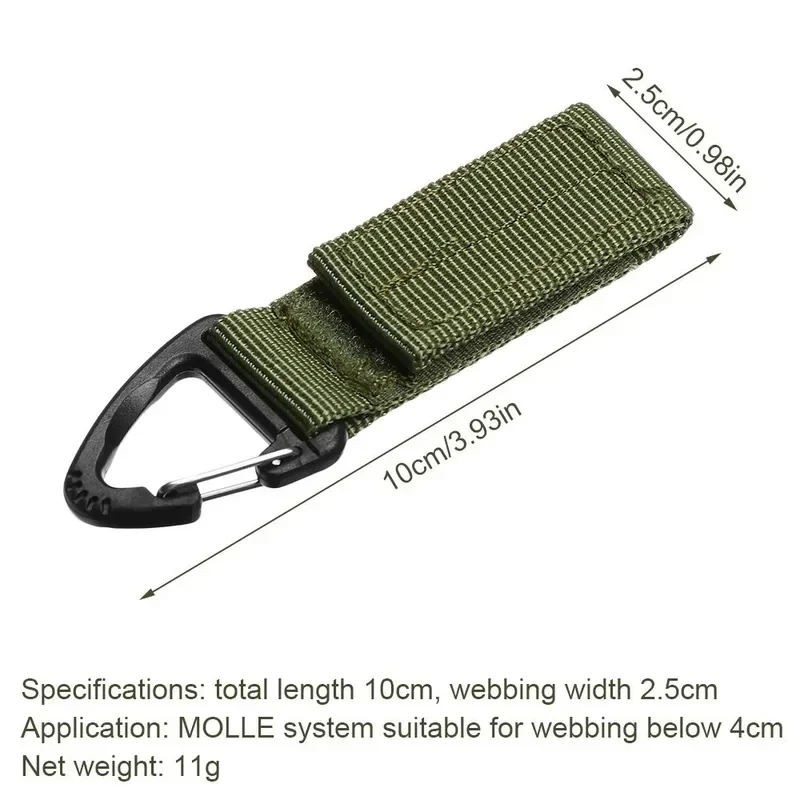 This Tactical Hanging Key Hook Clip Clamp Buckle is designed for outdoor enthusiasts and is perfect for securing your gear. Made from durable nylon webbing, it is compatible with MOLLE systems and can be used with various belts and backpacks.