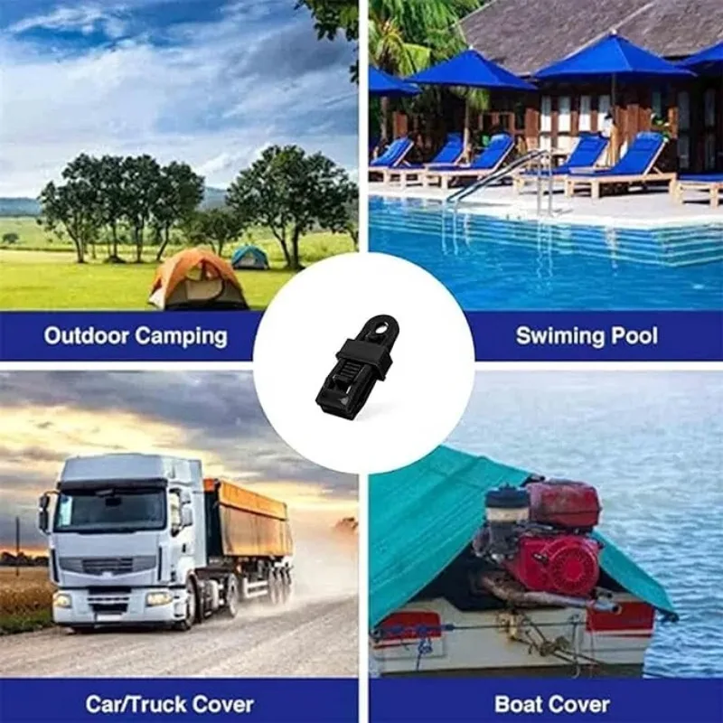 - EASY TO INSTALL: Simply slide the lock to tighten or loosen the clip, allowing for a secure grip on the tarp without tearing or damaging it. Instant anchors are provided for easy attachment to most standard hooks or ropes.