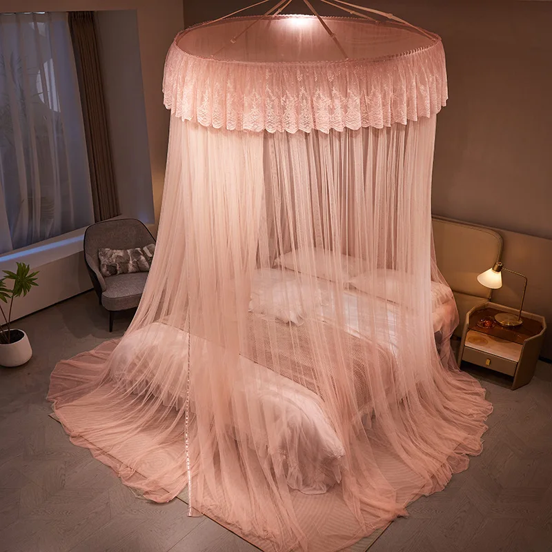 This elegant 1.5M lace large-diameter dome mosquito net is designed to provide a comfortable and insect-free sleeping environment. With its encrypted mesh, it effectively keeps insects out while allowing air circulation. The net features a three-door design, making it easy to access from any side, and is suitable for various bed sizes.