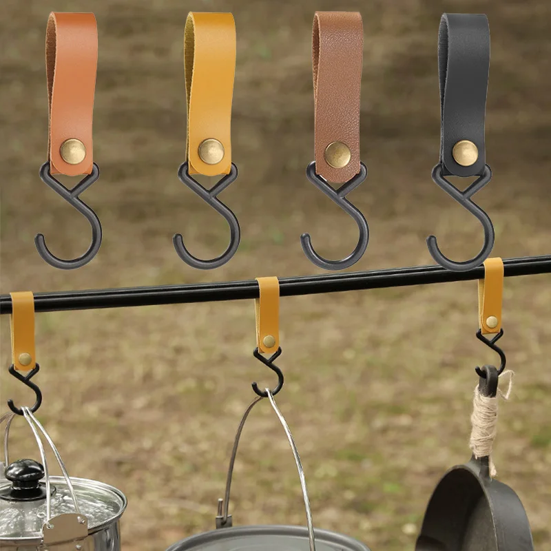 Outdoor Camping Hooks S Shaped Leather Hanging Hooks Storage Rack Shelf Hooks
