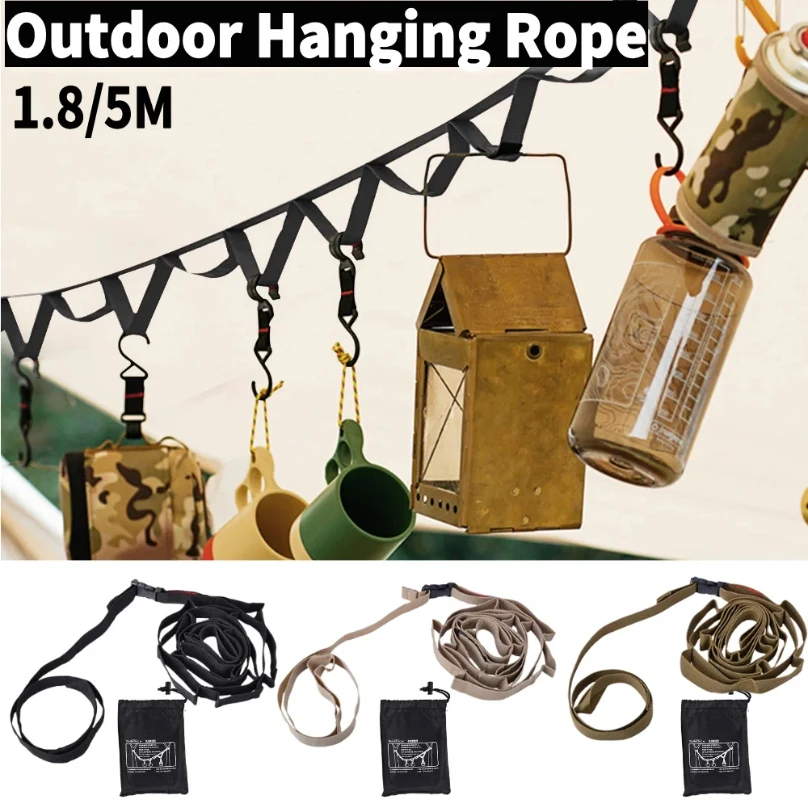 1.8/5m Outdoor Hanging Rope Multi-purpose Camping Lanyard Hanger Adjustable Length Campsite Storage Strap Backpacking Hiking Tent Accessories. This versatile outdoor hanging rope is perfect for securing gear at home or during outdoor activities.