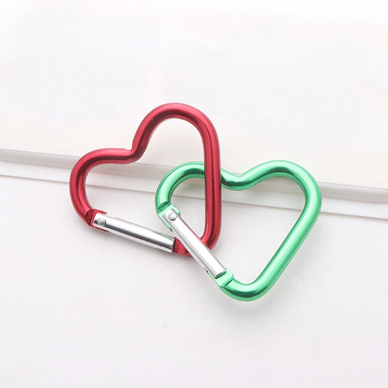 This heart-shaped carabiner key chain clip is a versatile accessory for outdoor activities. Made from durable aluminum alloy, it is lightweight and easy to carry. Perfect for hanging water bottles or attaching to your travel kit.