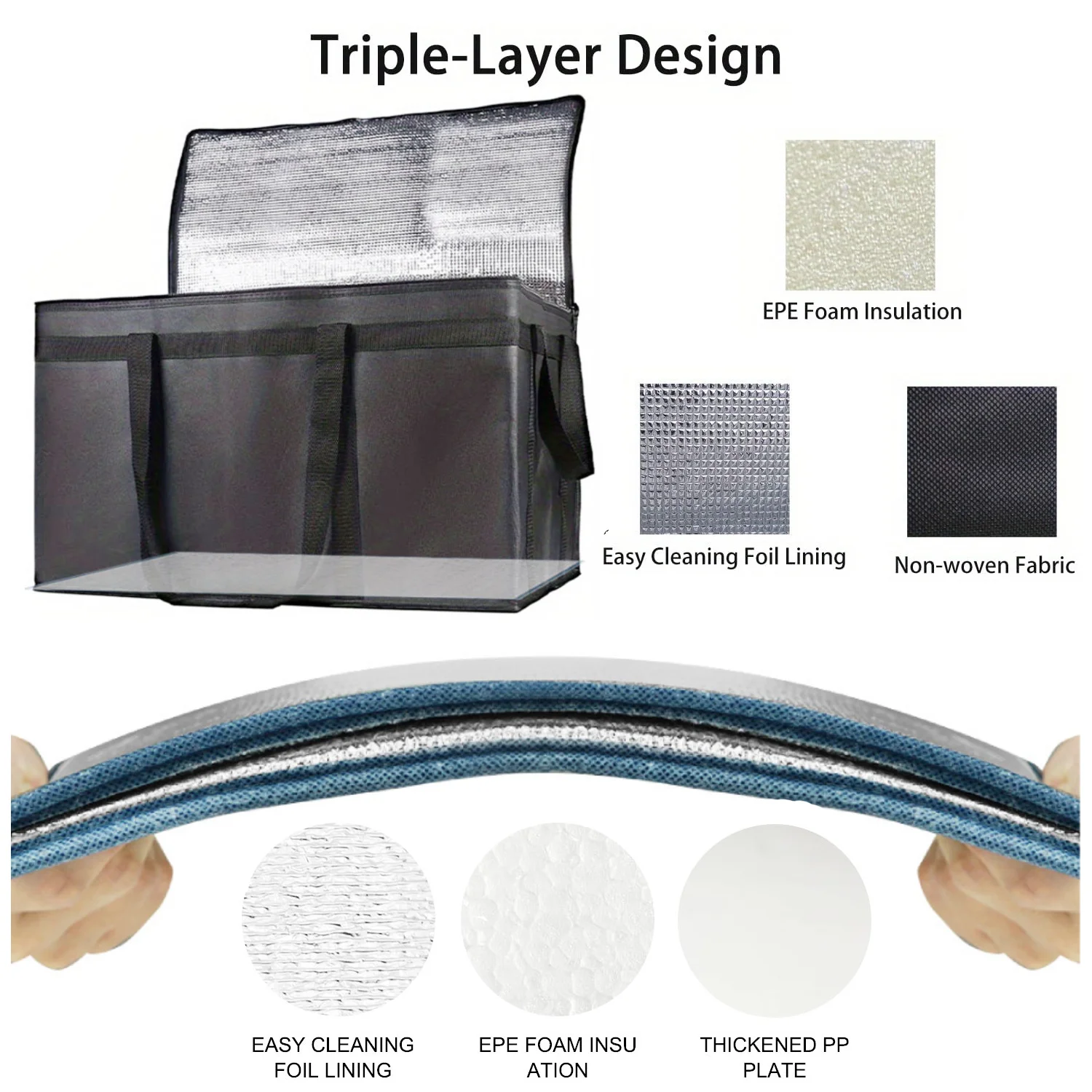 XXXL Large Capacity Reusable Warming Bag with Removable Hard Bottom 3 Layers Insulated Pizza Delivery Bag