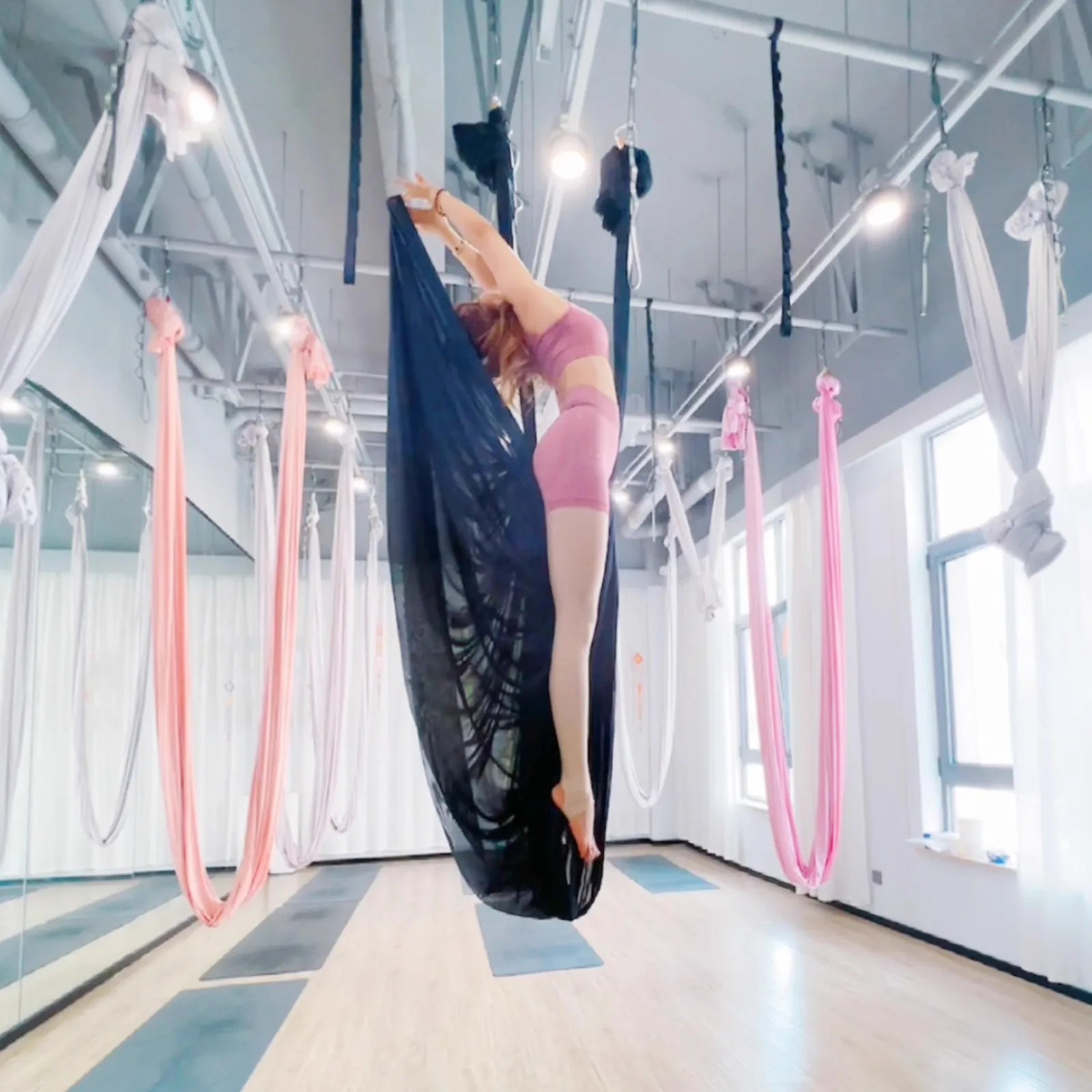 This 10 Meters Transparent Aerial Yoga Hammock Net Fabric is designed for aerial yoga enthusiasts looking to enhance their practice. The transparent fabric creates a stunning visual effect, making your aerial routines captivating and enjoyable.