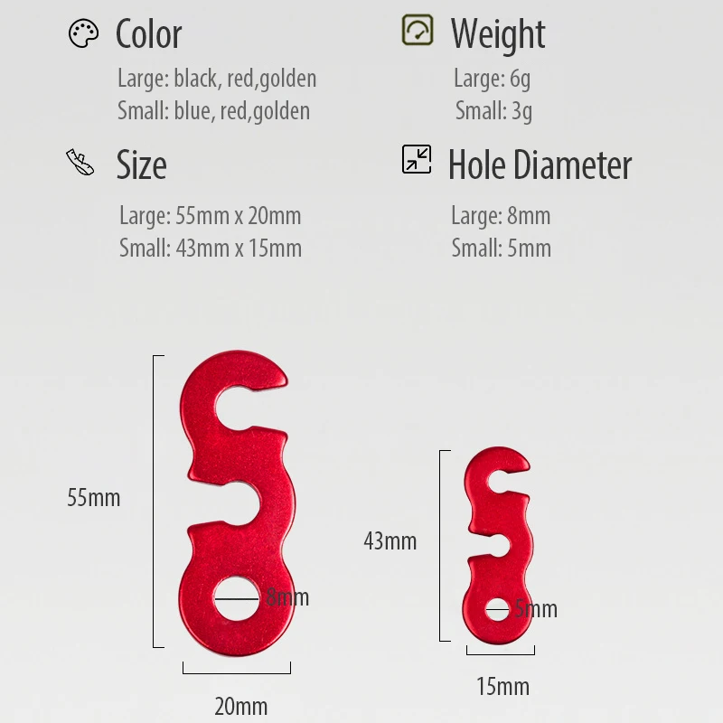 Introducing the 10pcs Aluminum Alloy Guyline Adjuster Tent Tensioners, perfect for securing your tent and ensuring stability during your outdoor adventures. These lightweight and durable adjusters are designed for easy use with paracord and wind ropes, making them an essential accessory for hiking and camping.