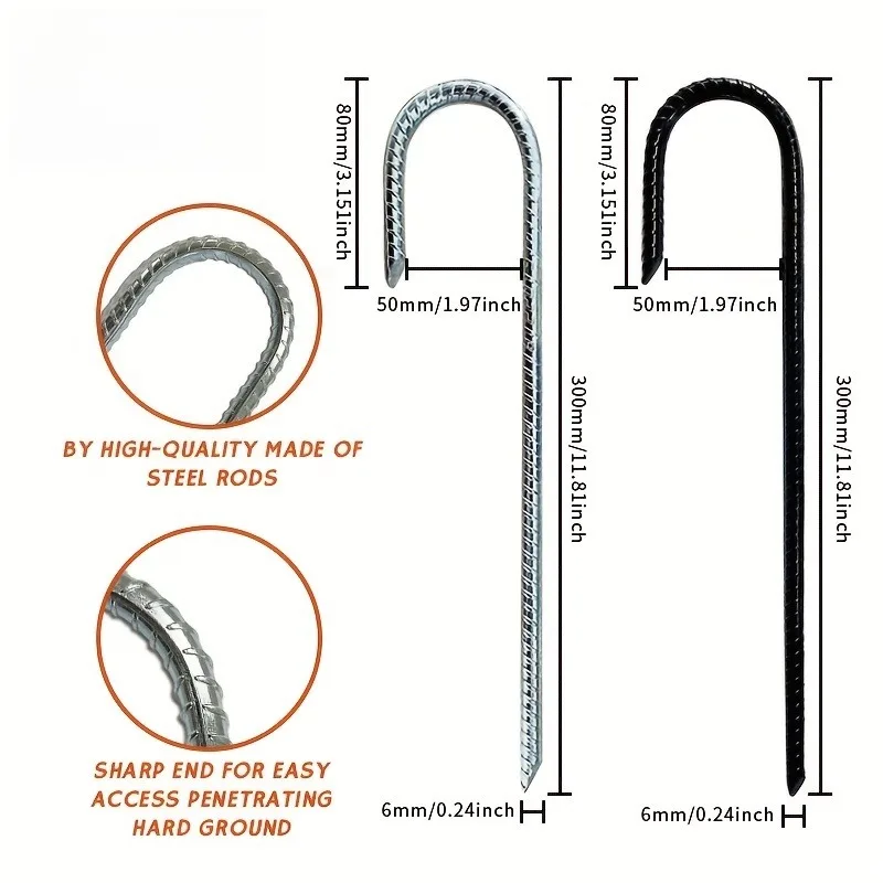 30cm Rebar Stakes Heavy-Duty J Trampoline Ground Stakes Metal Landscape Spikes
