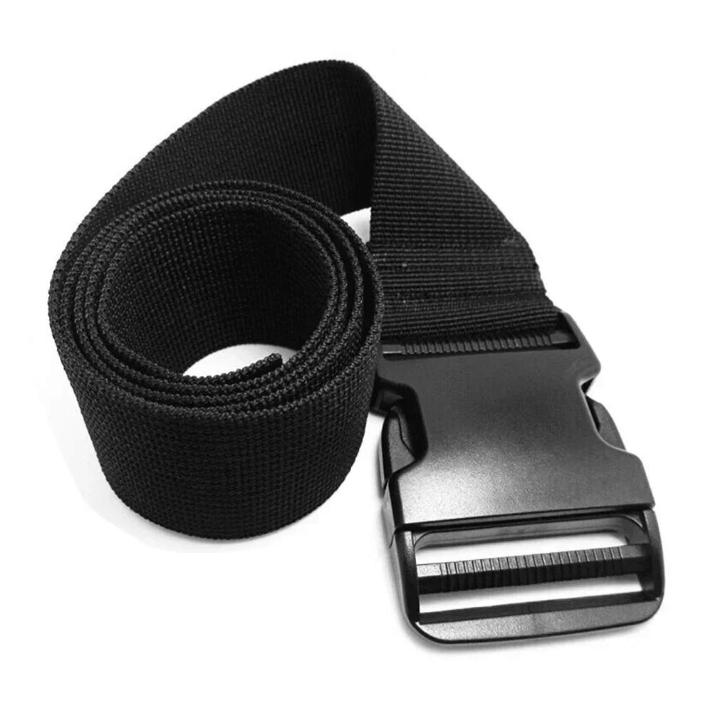 This durable nylon travel tie down strap is designed for securing luggage and other items during travel. It is versatile and can be used for various outdoor activities, making it an essential tool for camping and hiking.