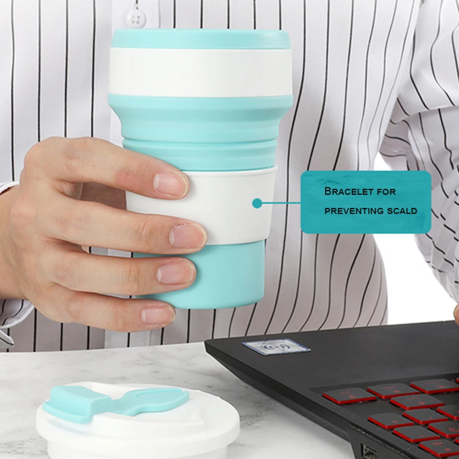 350ML Food-Grade Silicone Folding Cup With Lid Reusable Portable Coffee Cup