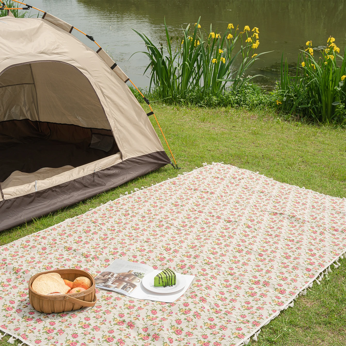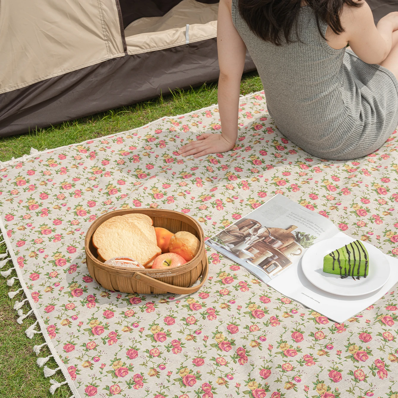 This Bohemian rose countryside style foldable outdoor picnic mat is perfect for beach travel, camping, and hiking. Its stylish design and practicality make it an ideal companion for outdoor activities.