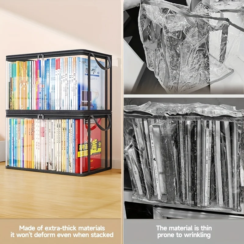 1pc Clear PVC Storage Bags with Flip-Top Lid & Viewing Window – Stackable Organizer Box, Heavy-Duty Transparent Storage Bags