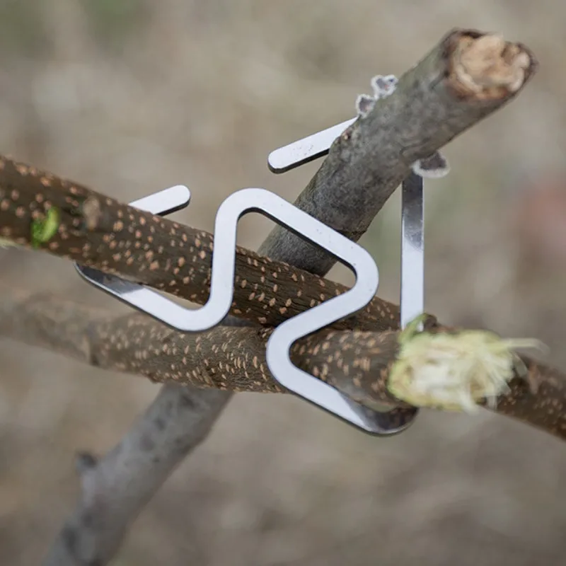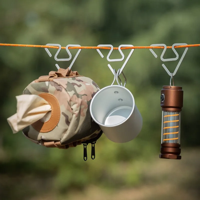 This multifunctional integrated hook is designed for outdoor camping, providing a reliable solution for hanging lamps and other items. Its double-headed design allows for bidirectional use, making it versatile for various camping needs.