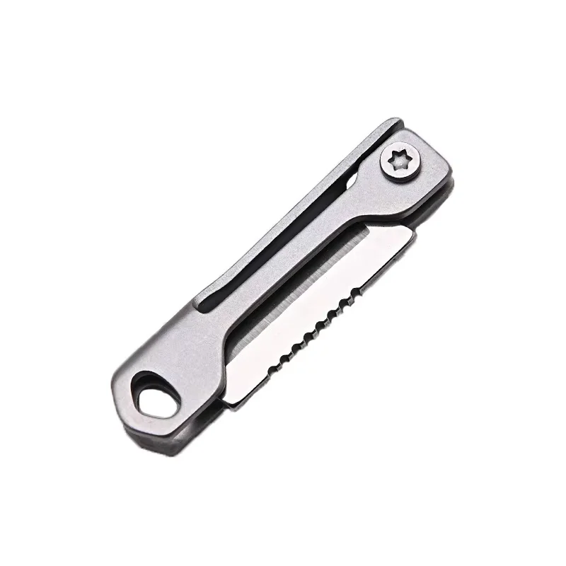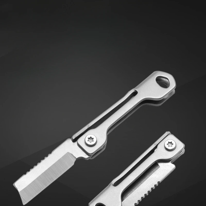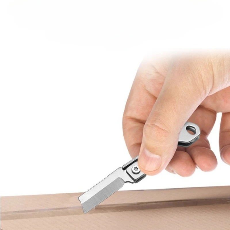 This stainless steel folding knife is a compact and portable tool designed for outdoor activities such as camping and hiking. Its mini square head design makes it easy to carry as a keychain pendant, ensuring you have a reliable cutting tool at hand whenever you need it.