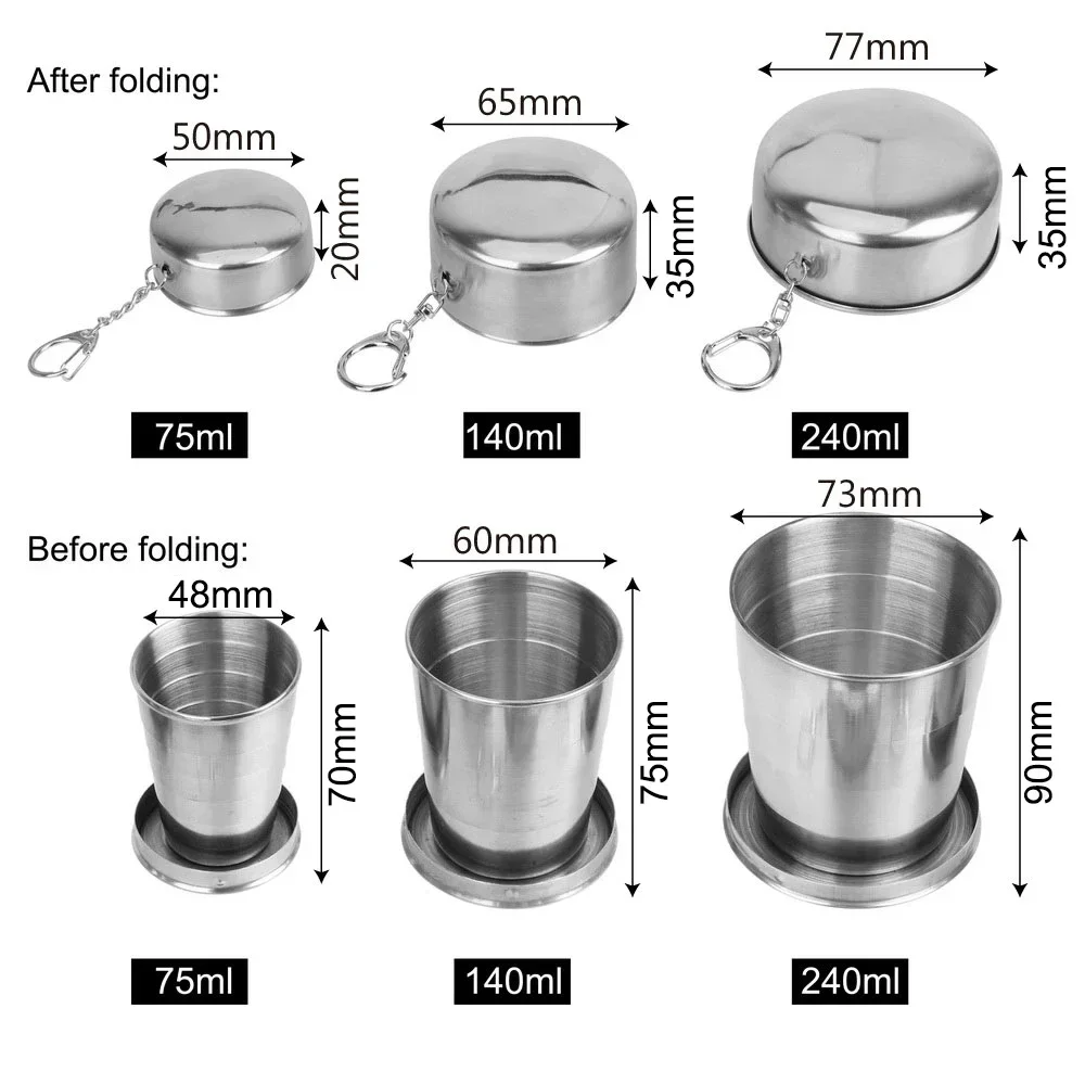 75/150/250ML Stainless Steel Collapsible Cup Expandable Cup Teacups Portable
