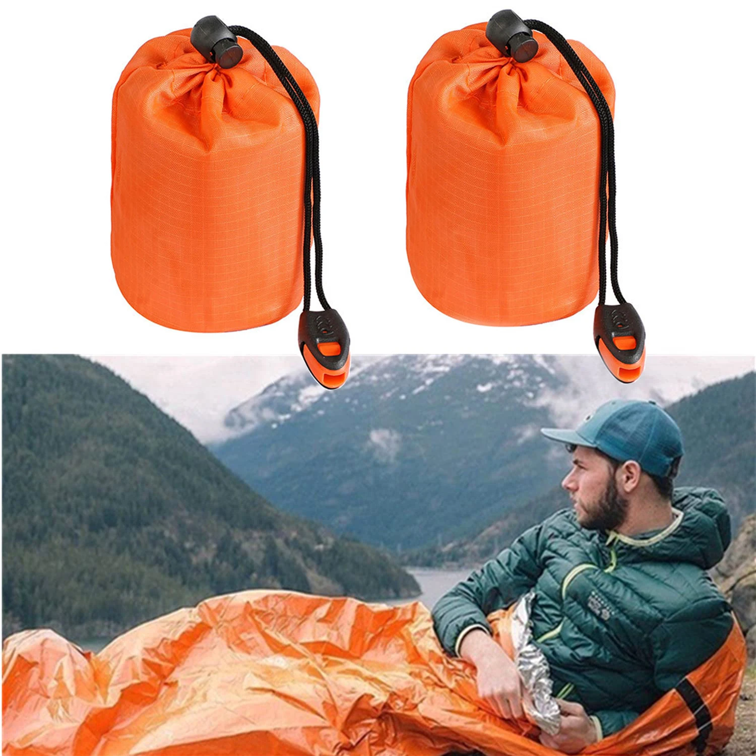 • 2 pieces of Portable Waterproof Emergency Survival Sleeping Bags