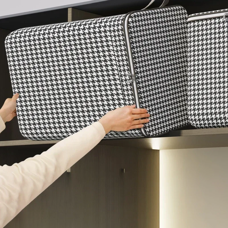 This foldable clothes organizer is designed to provide a large capacity for storing quilts and other items. It is perfect for moving or organizing your home while keeping your belongings dustproof.