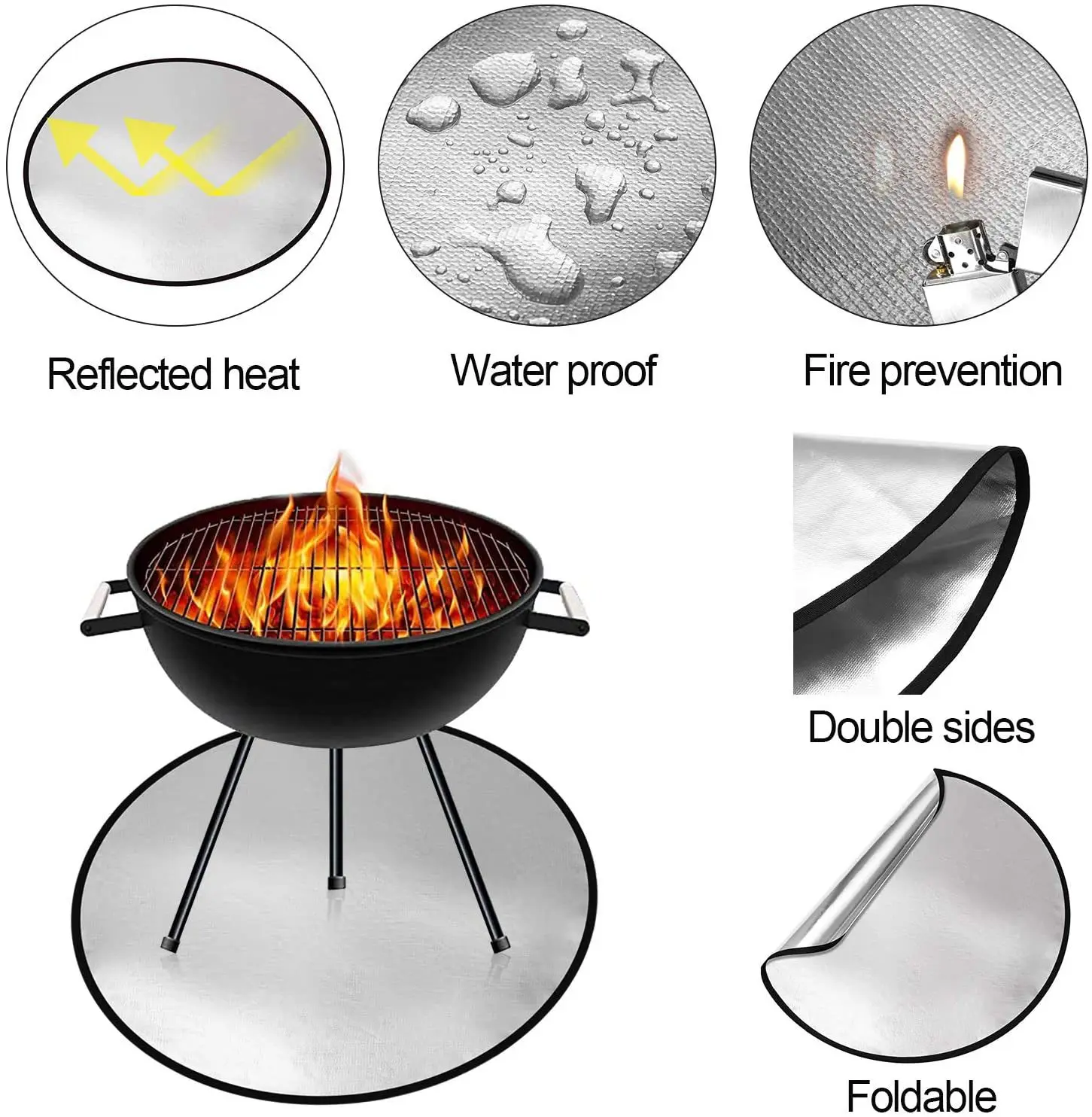 This fire pit mat is designed to protect your outdoor surfaces from heat and spills while barbecuing. Made from high-quality fiberglass, it is perfect for use under grills, smokers, and fire pits, ensuring your deck or lawn remains clean and safe from grease and embers.