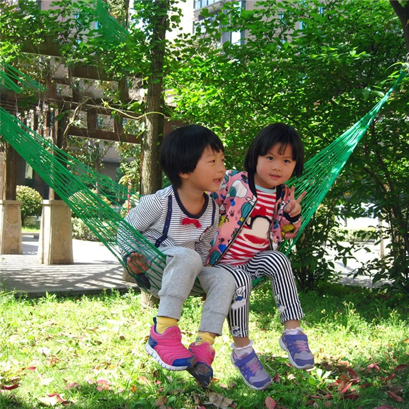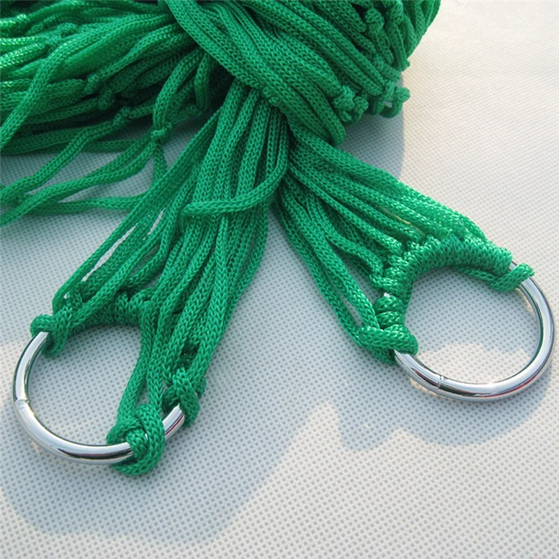 Thick Mesh Camping Hammock Nylon Rope Single Hammock Outdoor Supplies Green