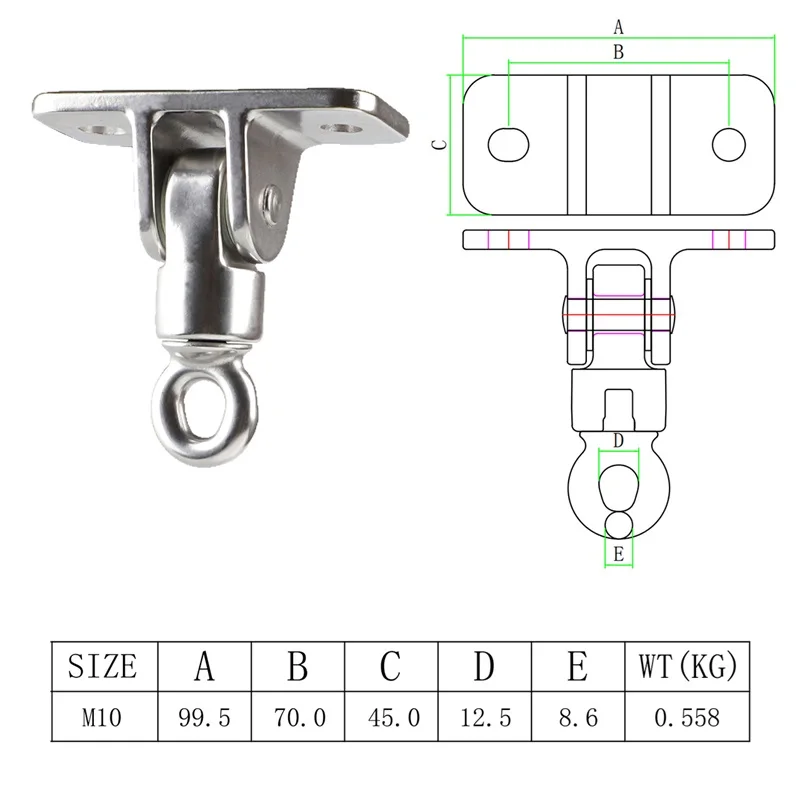 This stainless steel hanger is designed for smooth swinging and is perfect for various hanging applications, including yoga hammocks and playground swings. Its 360° rotation feature allows for easy movement and comfort while using your hammock or swing.