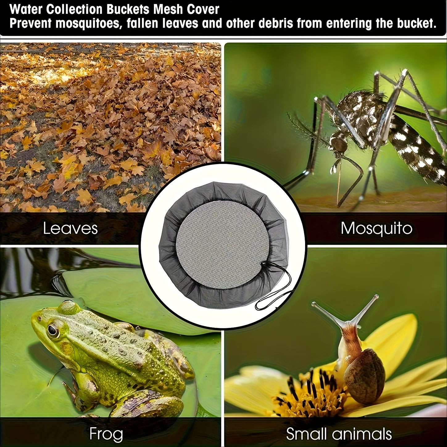These Heavy-Duty Polyester Mesh rain barrel covers are designed for outdoor use and are compatible with standard rain barrels. They feature a convenient drawstring closure for easy installation and secure fit, ensuring your rain barrels are protected from debris and pests.