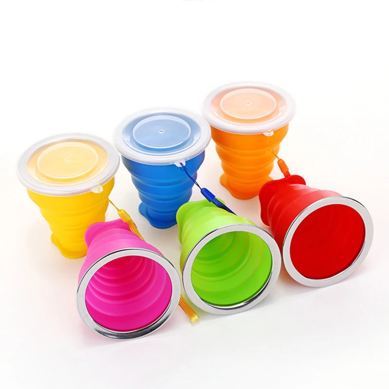 200ML Portable Silicone Retractable Folding Cup with Lid Collapsible Drinking Cup