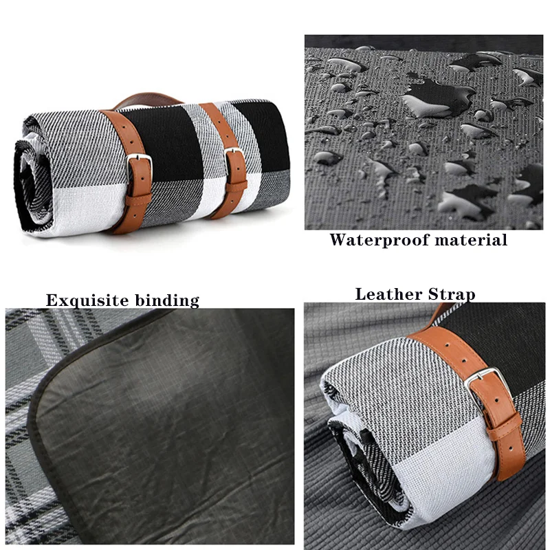 200x200cm Outdoor Picnic Blanket Waterproof Foldable Mat with Leather Handle
