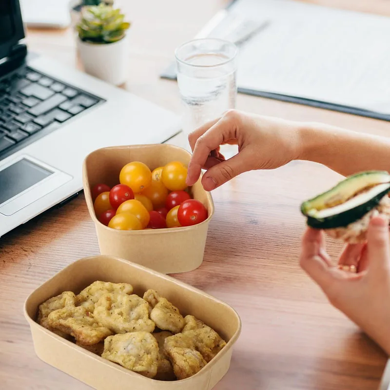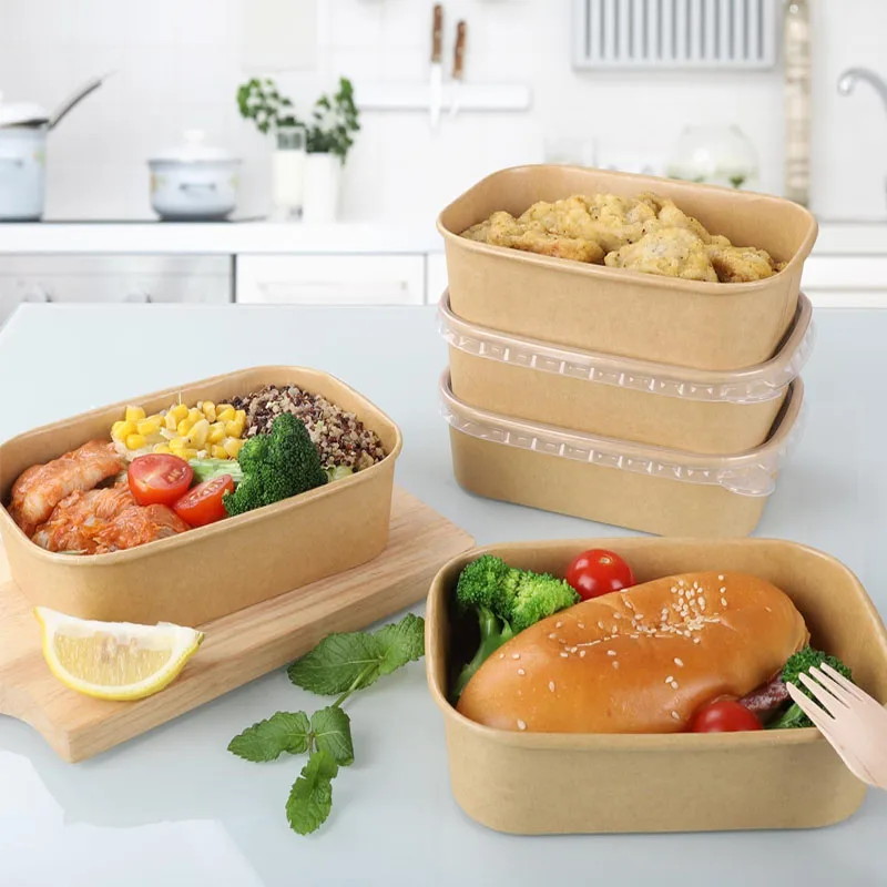 Kraft Paper Food Containers with Lids Rectangular Meal Prep Paper Bowls
