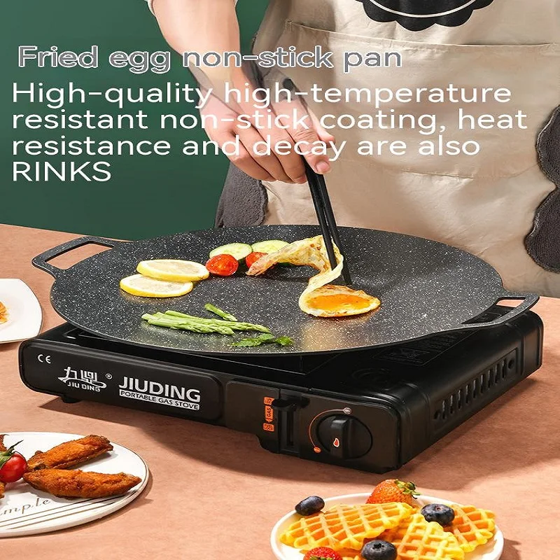 This round grill plate is designed for outdoor cooking, making it perfect for picnics and camping. Its non-stick surface ensures easy cooking and cleaning, while its portable design allows for convenient transport.