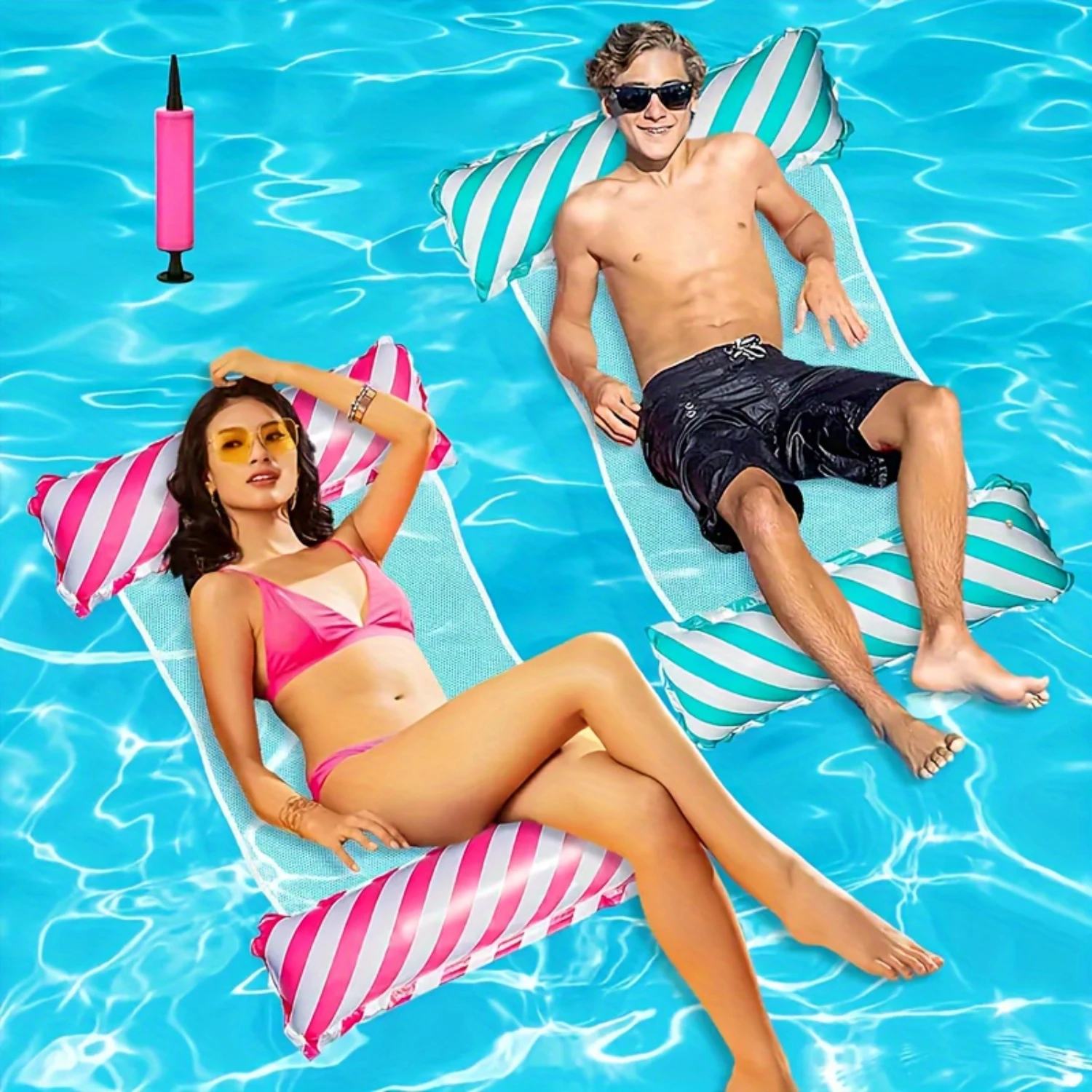 Experience ultimate relaxation with this set of 2 Foldable Striped Inflatable Pool Loungers, ideal for pool parties and beach outings. These loungers are designed for comfort and convenience, making them perfect for ages 14 and above.