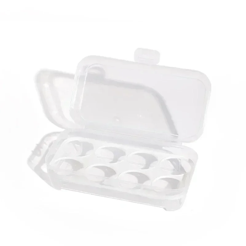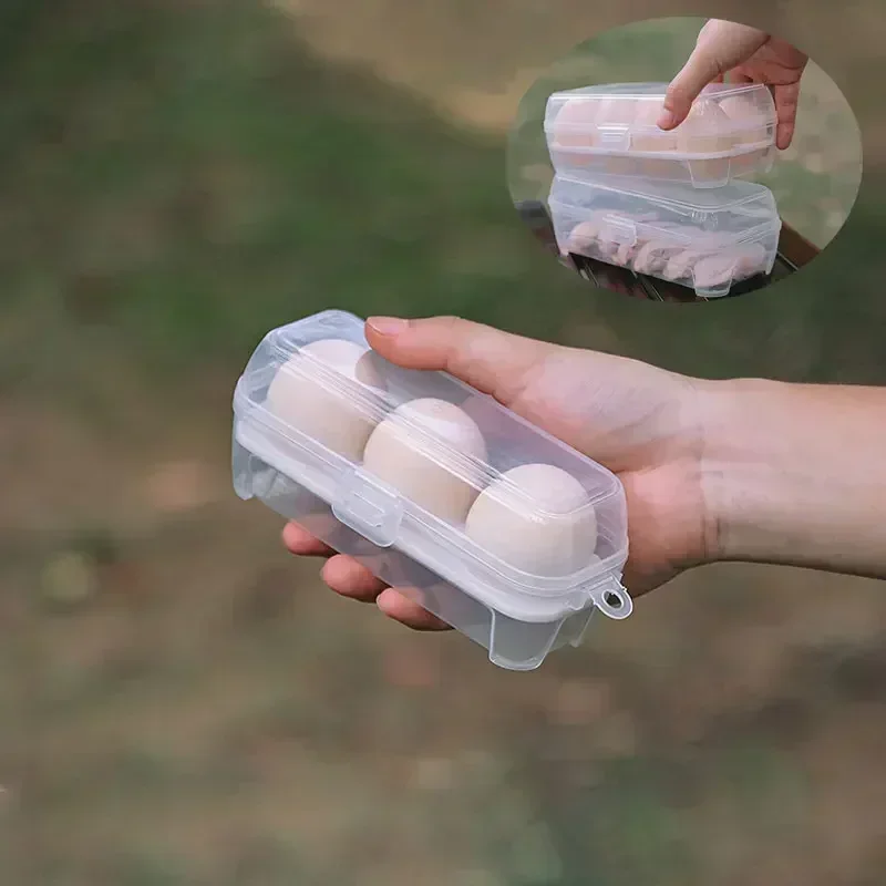 This egg storage box is designed for safe and organized transportation of eggs, making it ideal for camping, picnics, and refrigerator storage. It features a transparent design for easy visibility and comes in three sizes: 3 grids, 4 grids, and 8 grids.