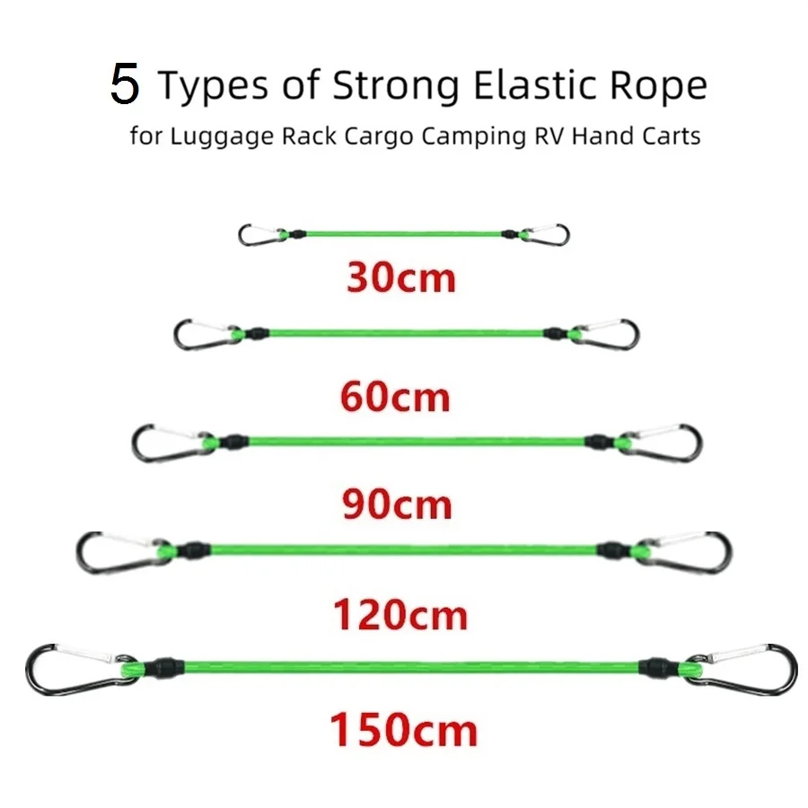 30-150CM Green Stretch Elastic Ropes 8MM Bungee Cords With Hooks Lightweight Bikes Tie Car Luggage Packing Roof Rack Strap
