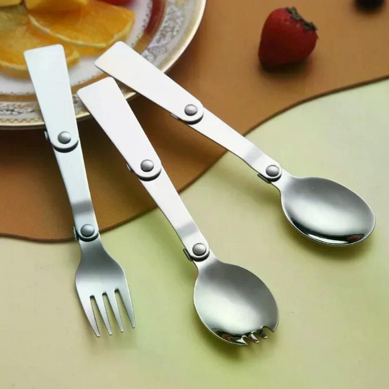 304 Stainless Steel Folding Spoon Fork Set Portable Travel Tableware