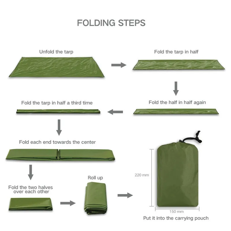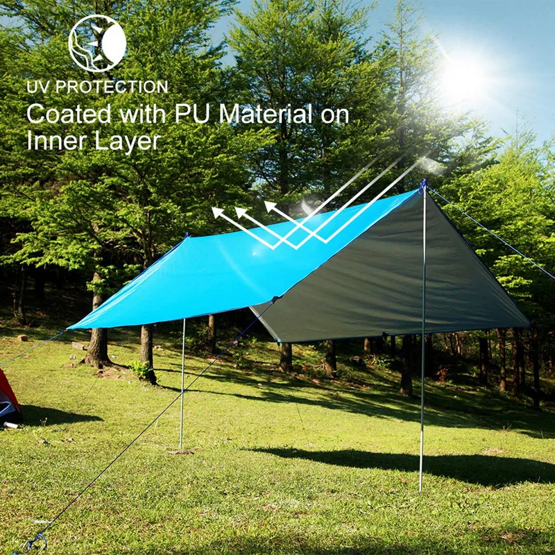 - Waterproof and Durable: Made from ripstop nylon, this tarp is lightweight yet strong, offering excellent resistance to tears and punctures. It features a 2000 PU waterproof rating, ensuring you stay dry in wet conditions.