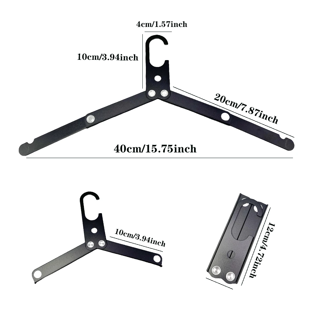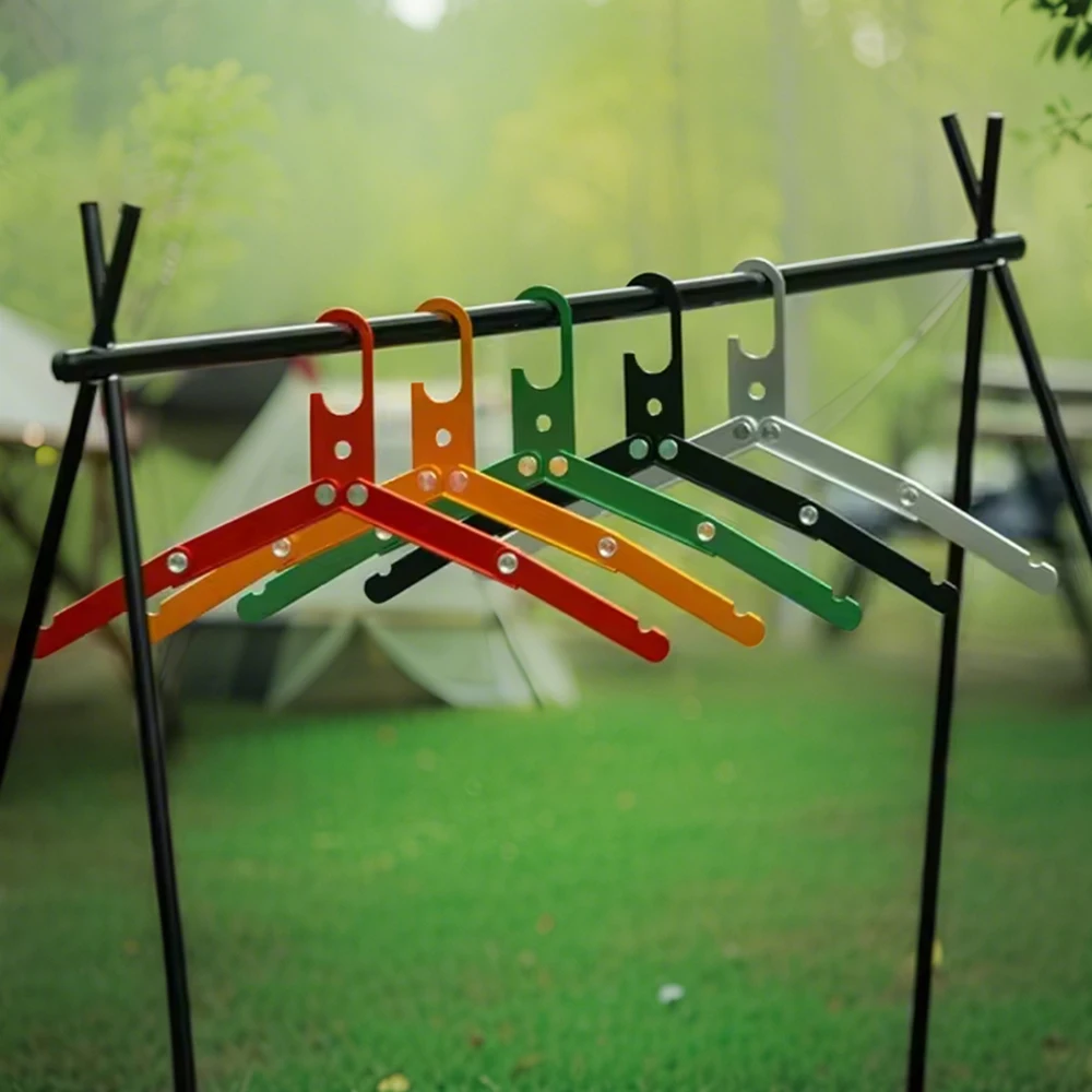 This set of 3 outdoor camping folding hangers is designed for convenience and portability. Made from durable aluminum alloy, these hangers are perfect for drying clothes while traveling or for use at home. Their lightweight and foldable design makes them easy to carry and store, making them an essential accessory for any camping trip.