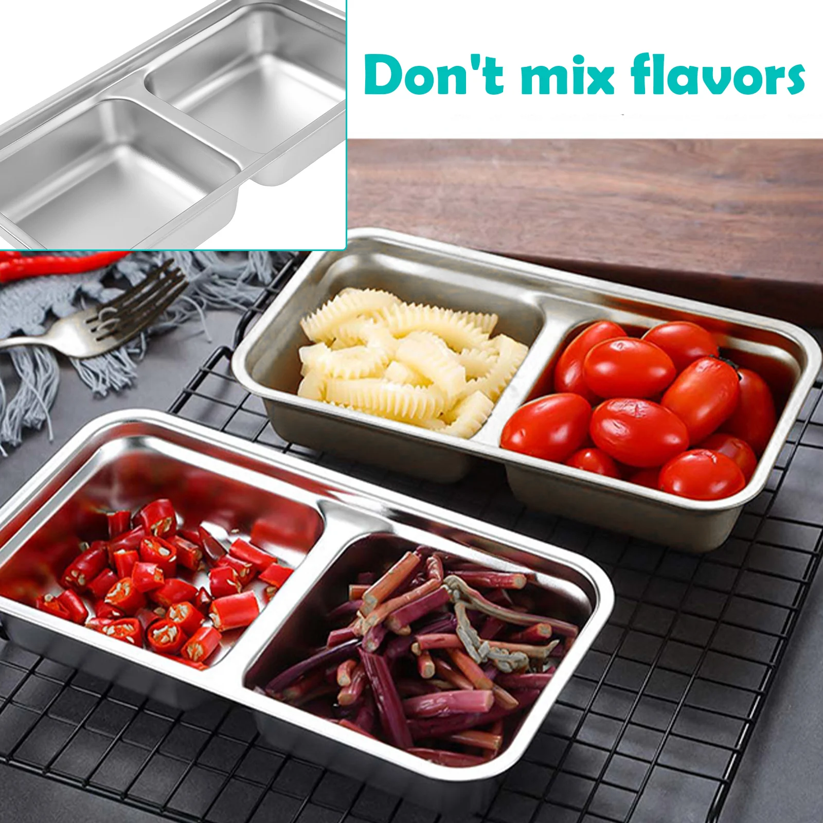 Stainless Steel Snack Container with Lid 2 Grids Lunchbox Food Storage