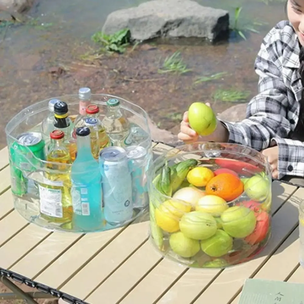 This set includes 4 clear outdoor folding water basins, designed for convenience and portability. Ideal for various outdoor activities, these basins are perfect for washing hands, fruits, and vegetables, or for general water storage.
