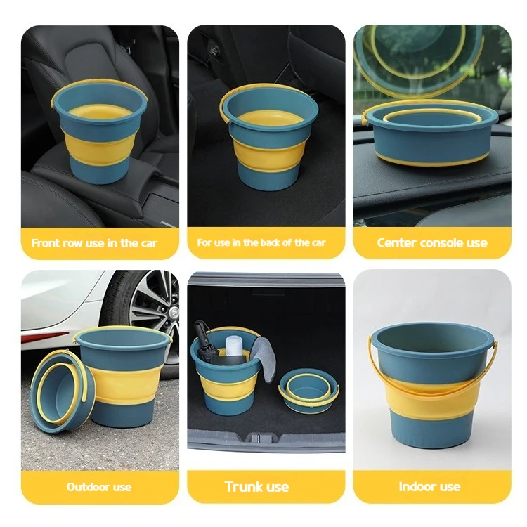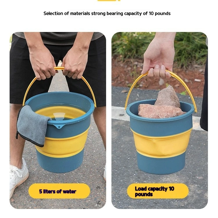 This portable folding bucket is designed for various outdoor activities such as car washing, fishing, and camping. It is lightweight and space-saving, making it an essential tool for your adventures.