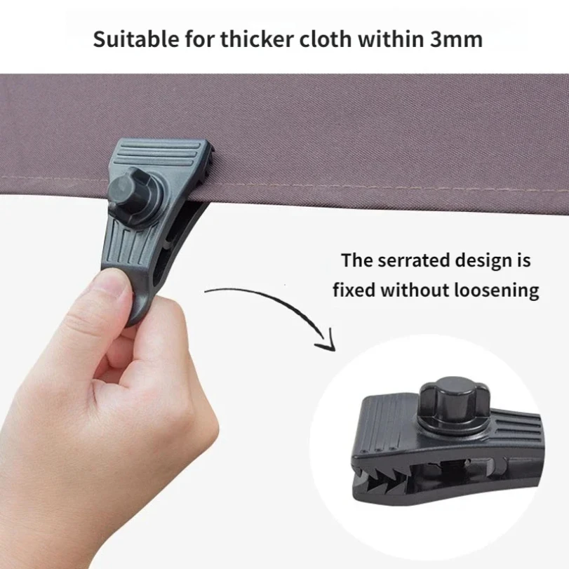 These heavy-duty tarp clips are designed for securing pool covers, tents, and canopies during outdoor activities. Made from durable plastic, they provide a reliable grip and are easy to use, making them ideal for camping and other outdoor adventures.