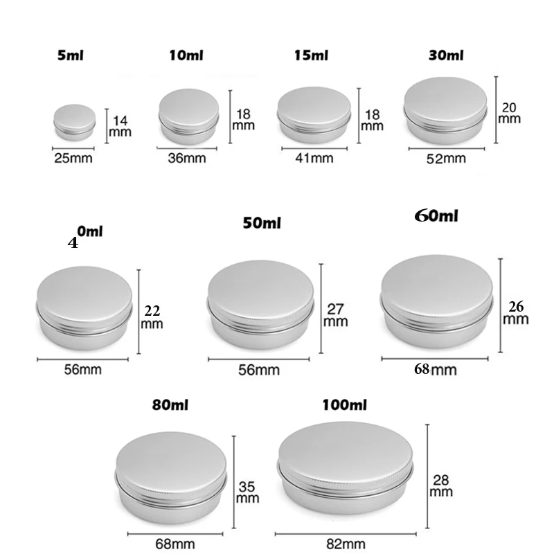 5-50Pcs 5ml-100ml Empty Silver Aluminum Tins Cans Screw Top Round Containers