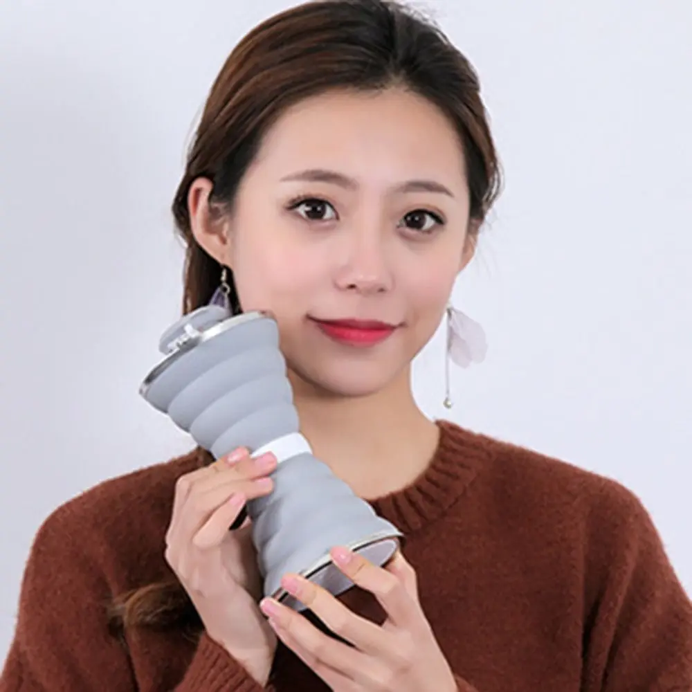 500ml Silicone Foldable Water Bottle Heat Resistant with Hook Travel Cup