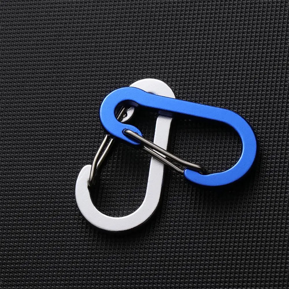 This set of 5PC Aluminum Alloy Carabiners is designed for various outdoor activities. Each carabiner measures approximately 5*2.6cm, making them lightweight yet strong for quick clipping and gear hanging. They are versatile tools suitable for use as gear hangers, keychains, backpack buckles, and bottle clips. The wire gate design provides enhanced durability and a wider opening compared to solid gates, ensuring ease of use.