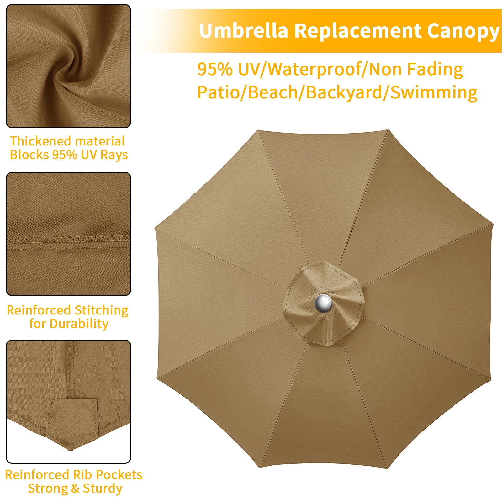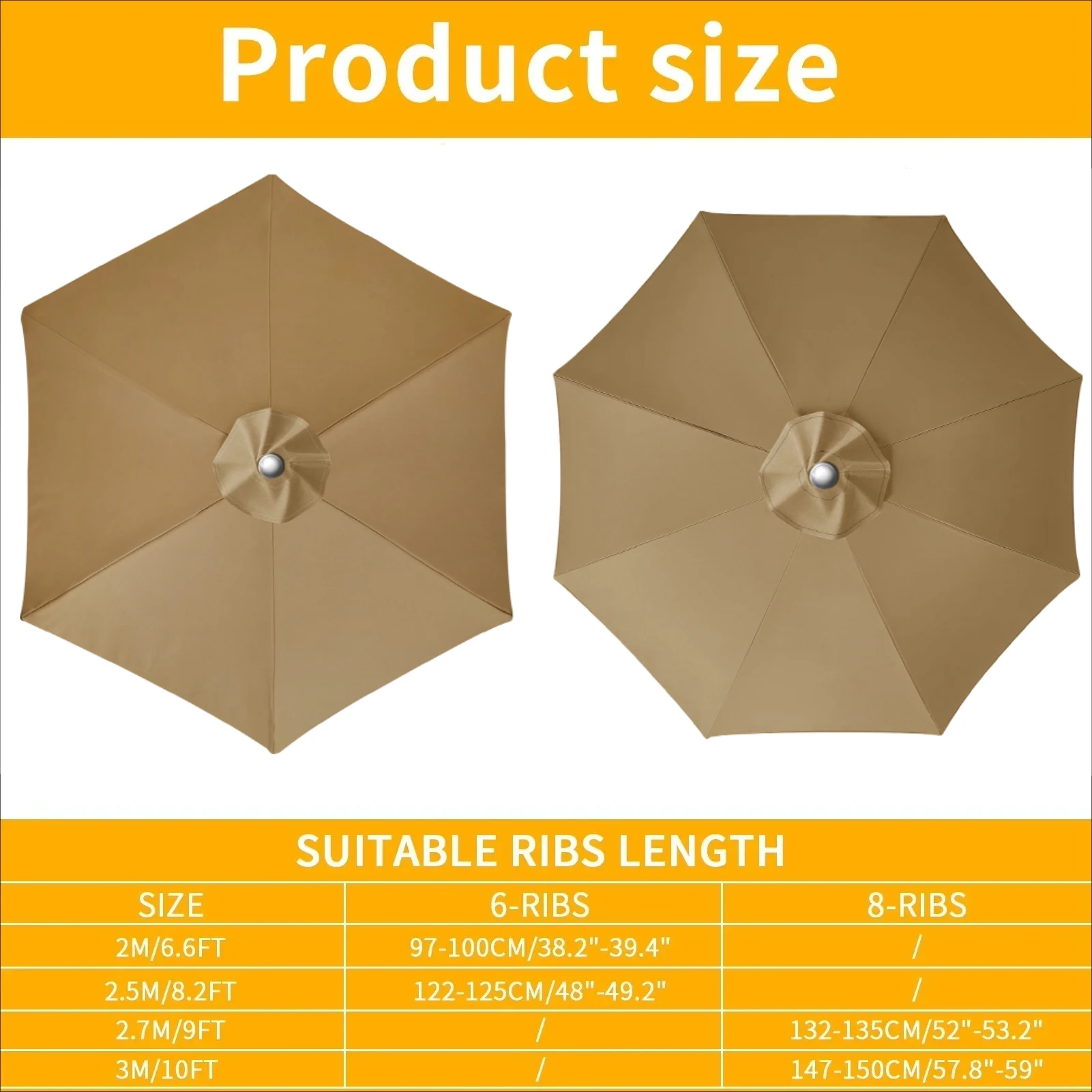 This replacement canopy is designed to fit 6 or 8 ribs umbrella frames, providing a reliable solution for your outdoor shading needs. Please ensure to measure your umbrella rib length before purchasing, as the frame is not included.
