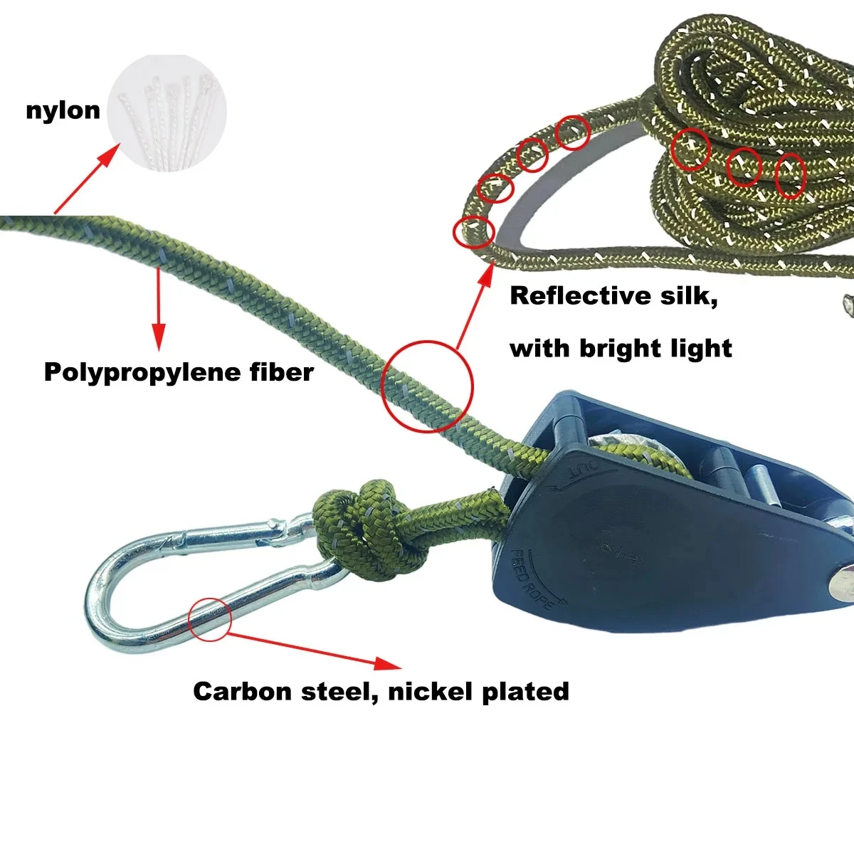 6mm Reflective Camping Tent Tie Down Rope Tightener Fastening Wind Rope Buckle
