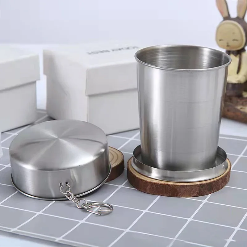 Telescopic Folding Stainless Steel Wine Glass Keychain Portable Travel Cup