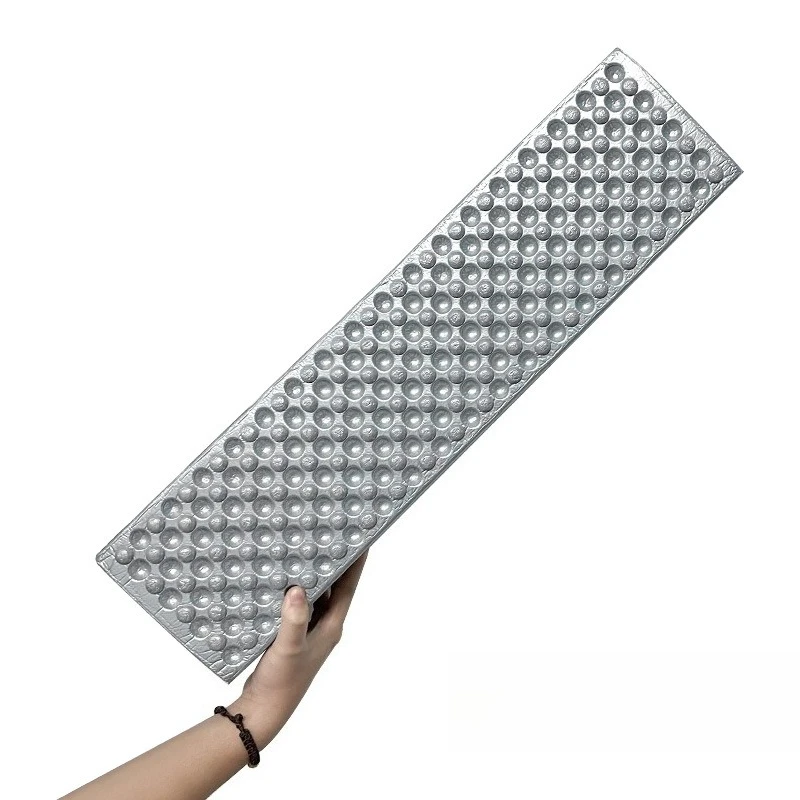 Aluminum Foil Camping Sleeping Pad is a foldable egg crate foam mat designed for hiking and picnics. It is lightweight, insulated, and provides multi-point support, making it an ideal choice for outdoor activities.