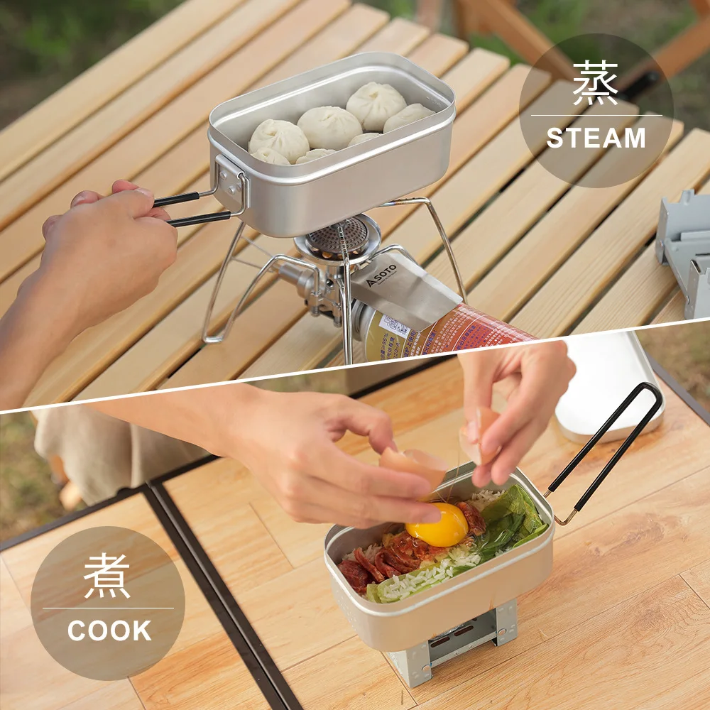 This aluminum lunch box is ideal for outdoor activities such as picnics, camping, and excursions. It features a convenient lid and handle for easy transport and use. The portable design allows you to reheat your meals on the go, ensuring you enjoy warm food wherever you are.
