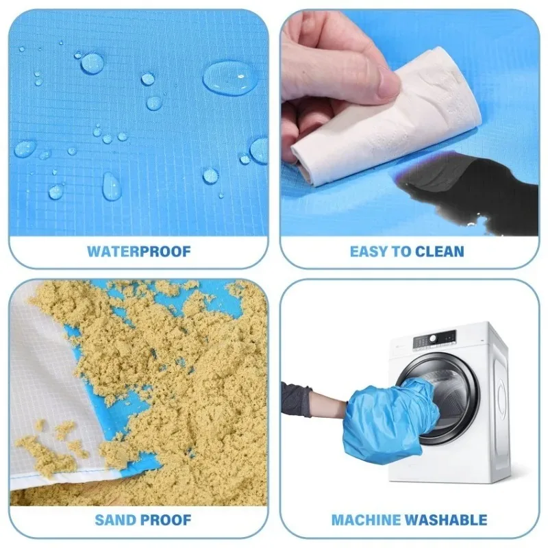 This large beach blanket is ideal for outdoor activities such as picnics, camping, and hiking. It comfortably fits 2-3 adults and features a waterproof and sandproof design, making it perfect for beach outings and other adventures.