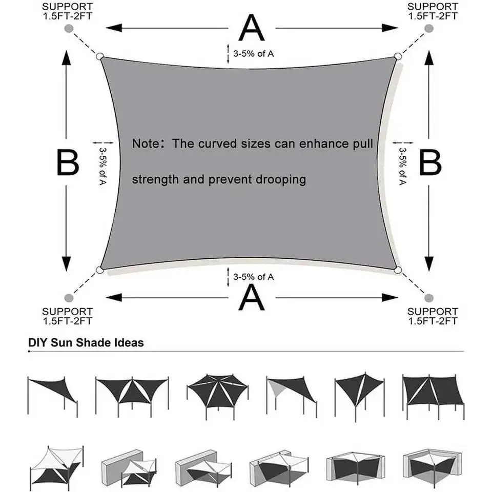 This waterproof shade sail is designed for outdoor use, providing excellent sun protection for your garden, patio, or beach activities. It effectively blocks 95% of harmful UV rays, ensuring a comfortable and safe environment for you and your family.